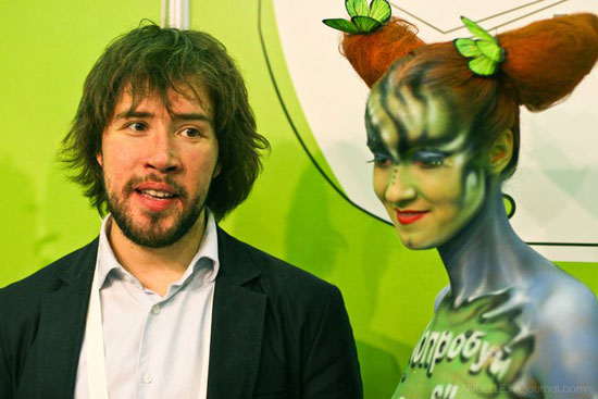 Михаил Смолянов и модель с фирменным мегаплановским боди-артом на RIW 2010