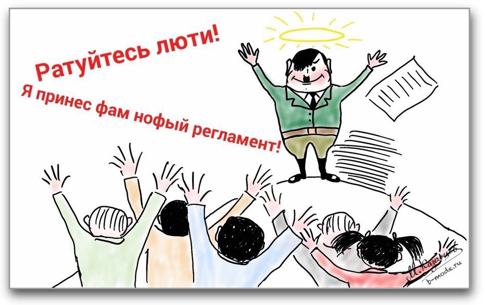 И вот настает торжественный миг. Руководитель являет чудо новых процедур и регламентов народу!