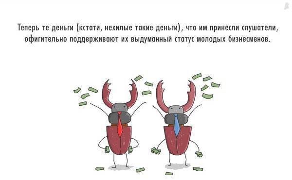 Виталий, я ихних и нормальных видела, ну то есть с нормальной бизнес-моделью. Но все повально - зомбаки, уверенные в избранности и непогрешимости. А вот самой "Бизнес-Молодости" - 100 баллов за модель, подход и умение окучивать. Кстати, там тончайшая психология у них, работающая как раз на инстинктах. Я сама не ходила, но добыла подпольную запись с реальных занятий - дурят мощно и круто.