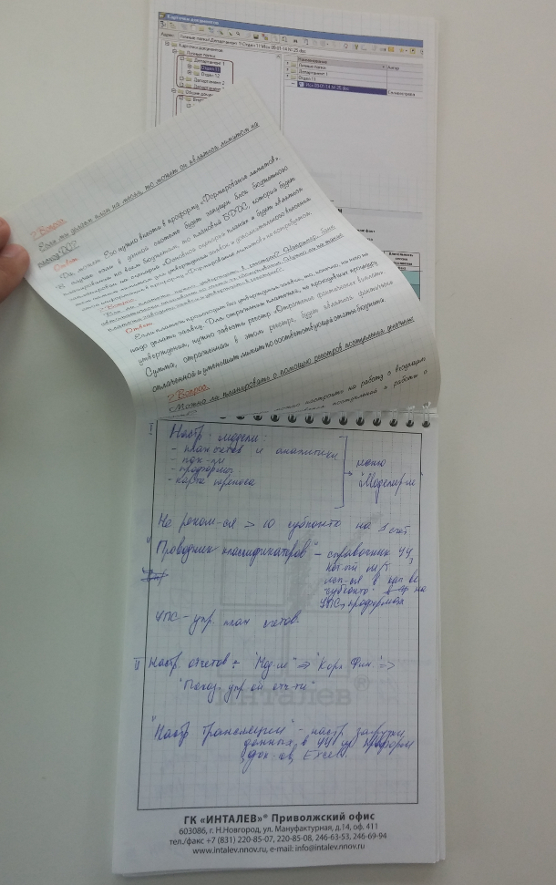 Оказывается один запутался во вкладках, второй забыл записать имя ЛПР, потому что боялся сбиться с текста, третий читал по слогам и поэтому запорол всю презентацию. Тогда мы развесили по всему офису ватманы с подсказками, со стрелочками, с правильными вопросами..дело пошло гораздо лучше. Периодически каждый дописывал туда сложные возражения или вопросы возникающие в процессе переговоров.Сейчас конечно весело смотреть на эти закарючки, а поначалу на каждый мой вопрос они на стенах ответы искали...Даже как-то помню у сотрудницы в пятницу вечером спрашиваю: "Катя, ты собиралась на понедельник взять отгул. Ничего не поменялось? Тебя не будет?"..а она вместо ответа по шпаргалкам глазами шарит.. Смеялись всем отделом)))