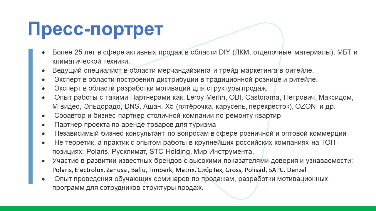 Вывод - Конечно, я переговорщик далеко не самого высокого уровня, но и далеко не последнего. И вот, я делаю логичный вывод, навеянный длительной практикой переговорных процессов. Раз Вы не отвечаете, игнорируете зеркальные мнения, значит Вам тупо, ответить нечего. То, что вы тренер, я уже не сомневаюсь, или "косите" под тренера. Потому, как, Вы прибегаете к обычным тренерским "отмазкам" типа "Давайте я сам решу" "Это не круглый стол" (раз это не круглый стол, то следовательно доминировать должно Ваше, не обоснованное мнение, без обсуждений, просто примите на веру) или вообще дикость для переговорщика так наступить в кал двумя ногами "Если у вас есть такое желание, то я могу с вами поговорить лично, но уже в офлайн-формате и ответить более развернуто на ваши вопросы." Последняя козырная карта? )))) Вы вот вдумайтесь, какую глупость вы сморозили! Другими словами, Вы не считаете нужным отвечать на вопросы публично, тут, на сайте, в свободном доступе для всех желающих, на Вашей-же ветке, Вами же созданным замесом. Почему? А. Понятно. Кто Вы? Вы же эксперт, а кто мы, работяги простые ))) что-бы вы снизошли, до нас, лохов, и дали ответы небожителя. Но, при этом готовы ответить мне исключительно в приватной беседе. )))) Открою Вам ещё один секрет. Что бы я, именно я, согласился с вами общаться в живую, уделить Вам своё время, которое денег стоит, я как минимум должен изучить Ваш сайт (если он у Вас вообще есть) увидеть Ваши достижения (включая денежный оборот, заключённые договора, объём Вашего рынка и процент Вашего присутствия, на этом рынке, а также время функционирования Вашей компании и количество Ваших сотрудников) какие либо рекомендации от Ваших партнёров.