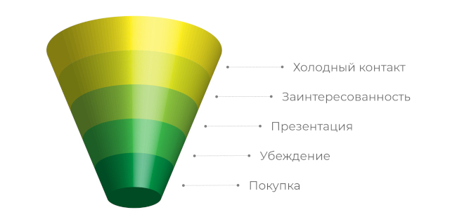 Со временем это понятие слегка изменило свой вид и теперь называется «воронкой продаж», но суть явления остается неизменной. Просто в наши дни такой инструмент разбирают более подробно.