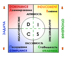 Система DISC оперирует четырьмя факторами из абривиатуры которых, и строится название системы.